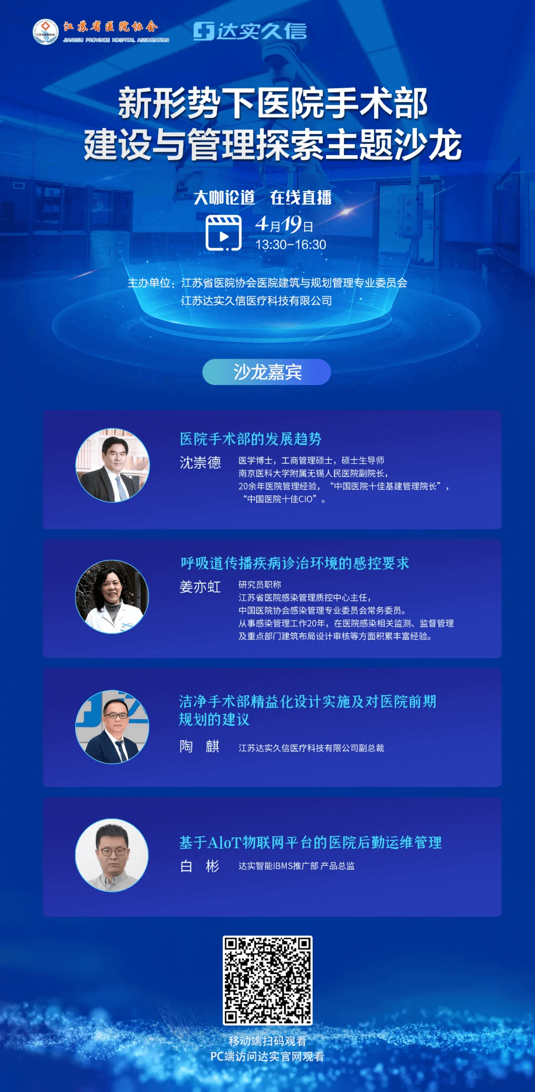 本次直播,邀請(qǐng)到了多位醫(yī)療領(lǐng)域的資深大咖,互相碰撞思想,探討心得。4大課題,180分鐘干貨,從理論到實(shí)踐,從現(xiàn)狀到發(fā)展,一場(chǎng)關(guān)于醫(yī)院手術(shù)部建設(shè)與發(fā)展的學(xué)術(shù)盛宴即將開啟。